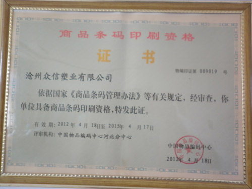 商品條碼印刷資格證書